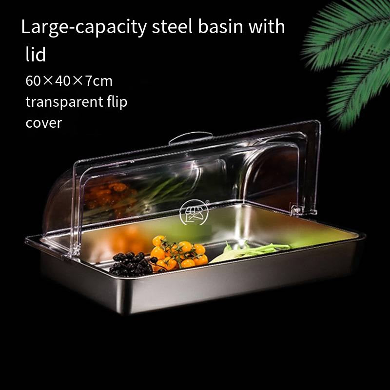 60*40Commercial serving trays with lids made of stainless steel for buffets, cake plates, food and cold dish display plates, rectangular hotel tableware, fruits, pastries, cakes, seafood tasting plates